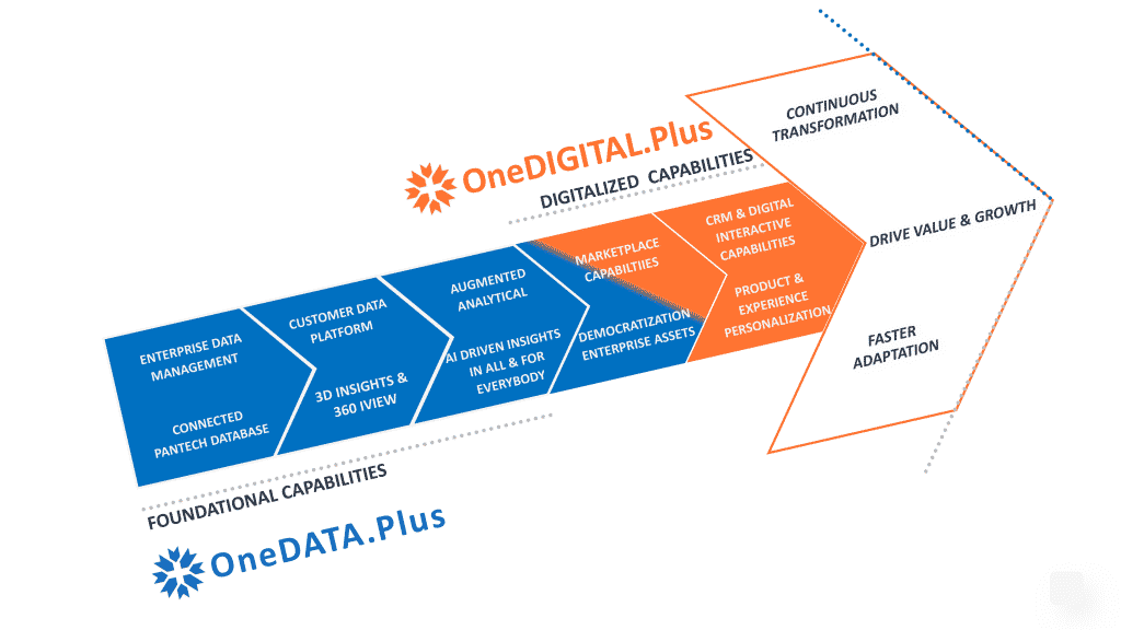 OneData.Plus takes care of the foundational modules of Data, Customer, and Analytics. Democratizing the use cases of these modules can be readily utilized across the enterprise. In doing so, OneData.Plus avoids replication and achieves cost reduction. OneData.Plus Technology is the key needed to enable Data, Customer, and Analytics insights in the marketplace.
